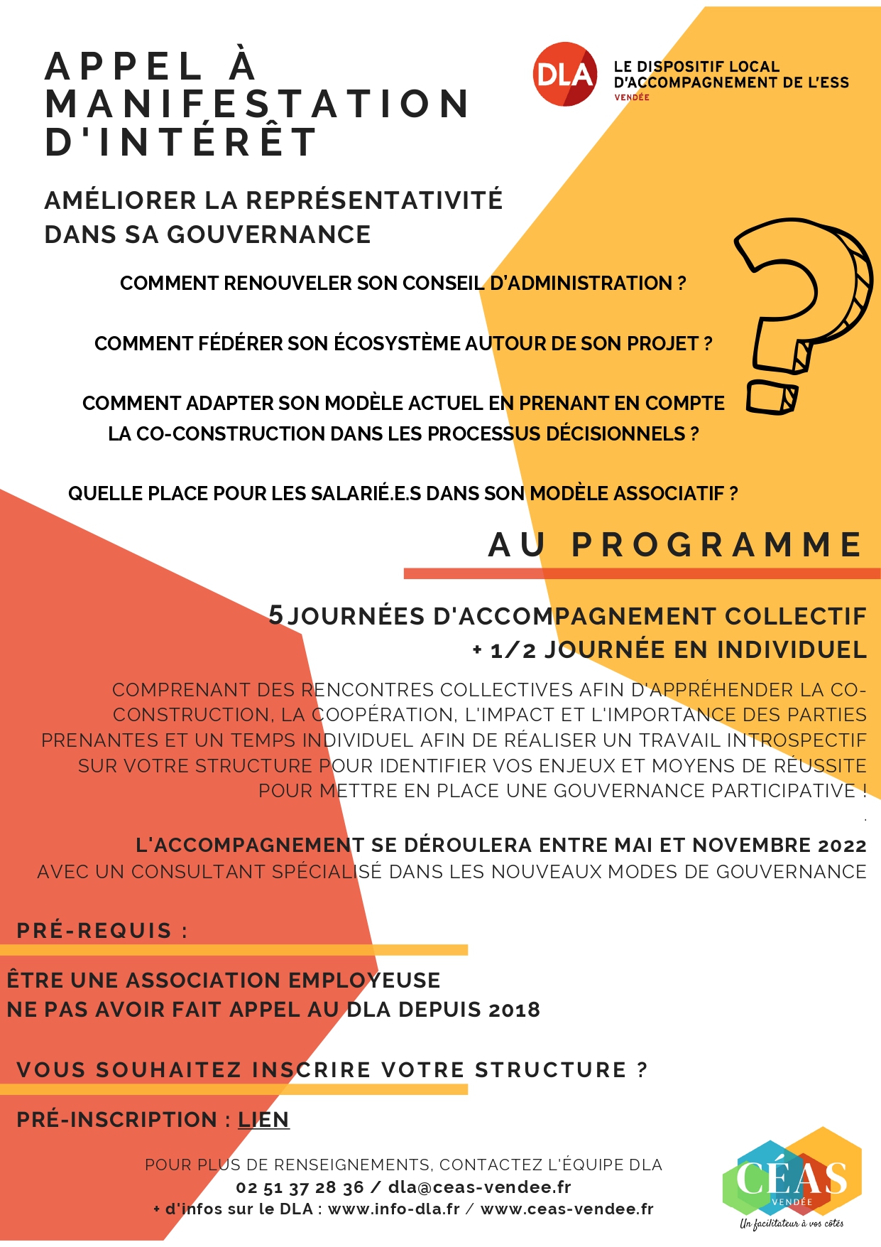 Le CEAS Vendée, en tant qu’opérateur du Dispositif Local d’Accompagnement (DLA) propose un accompagnement pour les associations vendéennes employeuses qui souhaitent remobiliser leurs instances décisionnelles et insuffler une dynamique positive dans leur structure.